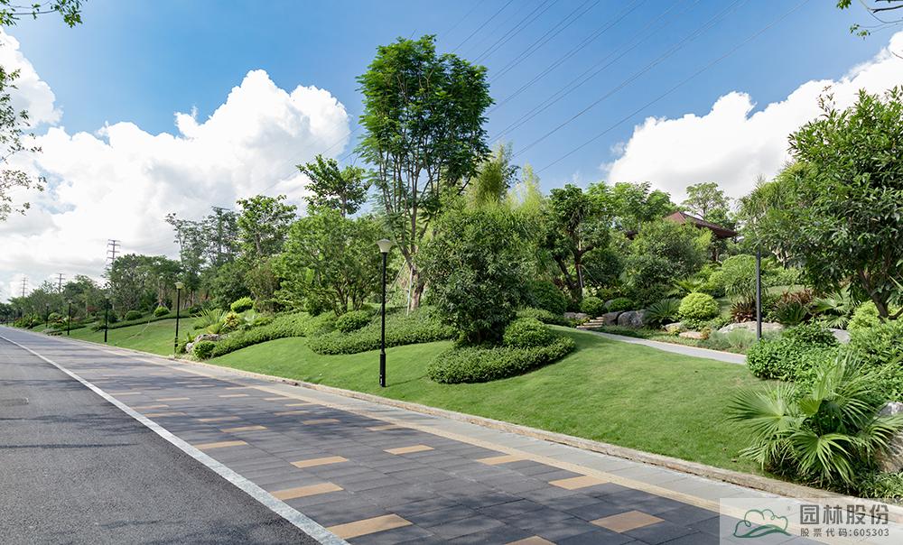 凤举路(光源四路至光明大道段)绿化景观提升项目位于深圳市光明区凤凰街道,南靠龙大高速,中部与创投路相交,临近龙大高速一侧现有绿化隔离带。项目建成后,集南国风光的大气与江南园林的秀美与一体,地势起伏有致,植物合理搭配,既有开阔通透的园路,也有曲径通幽的竹林;旱溪蜿蜒灵动,生态功能与景观功能共存,原木连廊亭榭,自然与艺术融合,塑石假山与堆坡造型相得益彰,人入其中,步移景异,让人流连忘返,舒适愉悦。