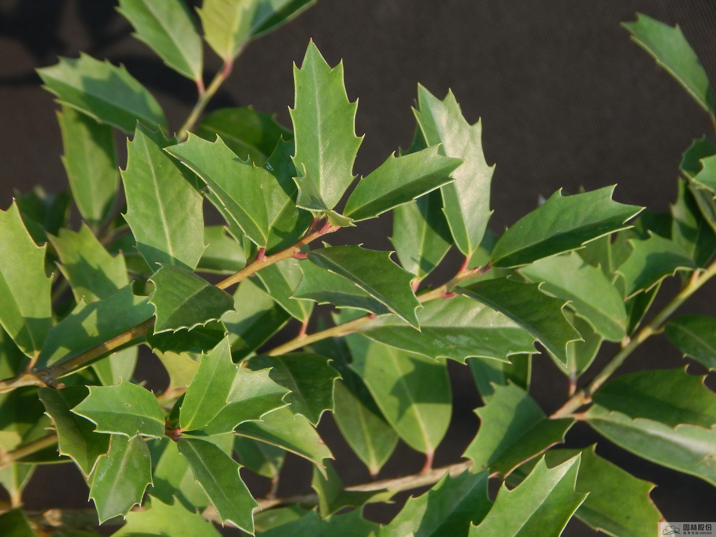 本品种为品种阿拉斯加Ilex aquifolium 'Alaska'种子繁育的实生苗中选育而得。常绿乔木,雌株,植株圆锥状,幼枝褐红色。幼叶红褐色,老叶绿色。叶片厚革质,矩圆形,叶缘波状起伏,密布中等深度的小刺齿。花期4月中上旬,雌花黄绿色。果红色,挂果期为10中下旬至11月中上旬。