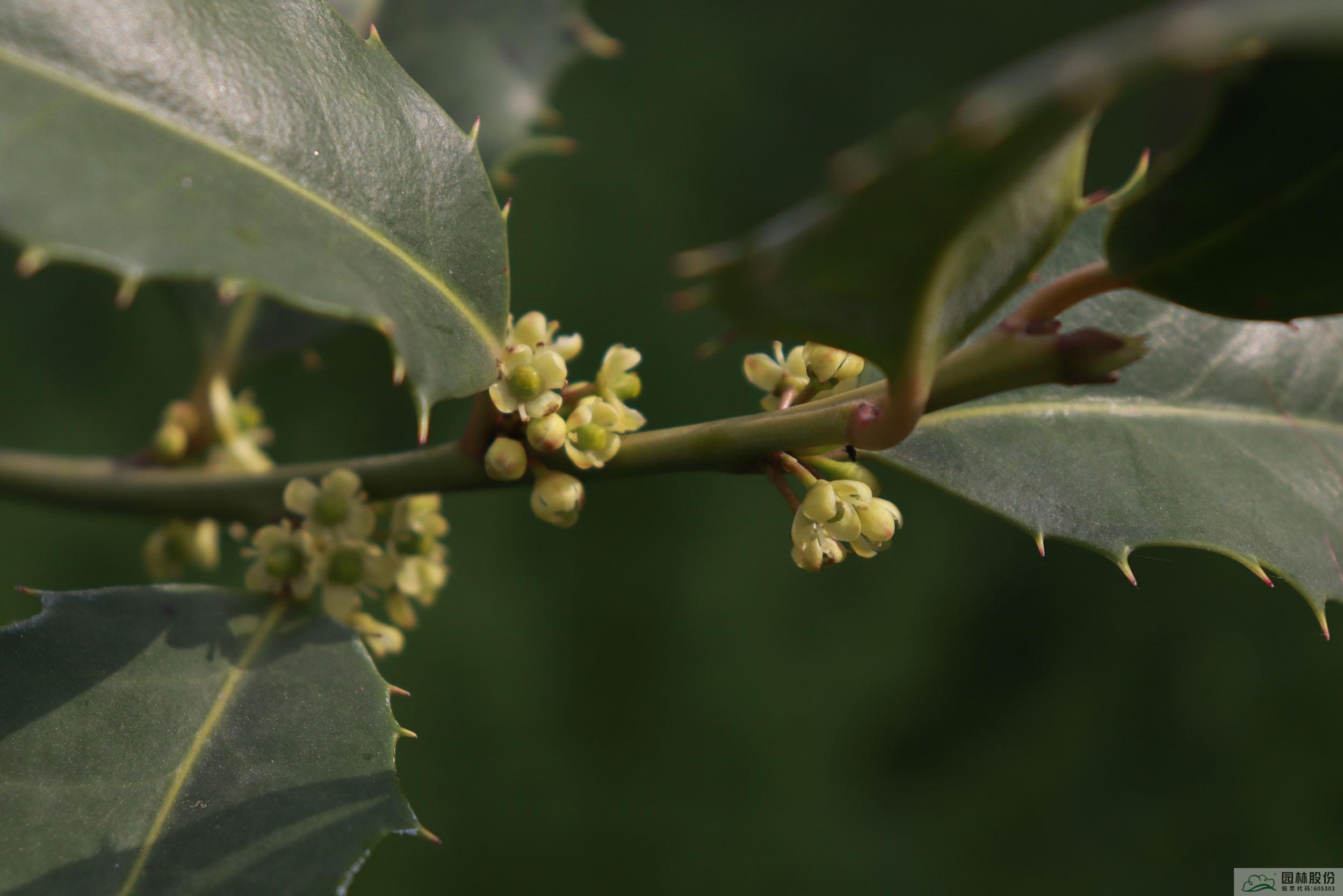 本品种为无刺枸骨Ilex cornuta ‘Fortunei’与全缘冬青Ilex integra种间杂交选育获得。常绿乔木,雄株,植株圆锥状。叶片厚革质,四角状或不规则,先端渐尖,具一枚刺齿,叶柄紫红色。雄花黄绿色,花期为4月中上旬。
